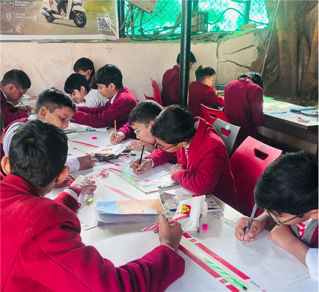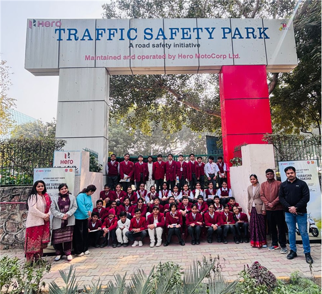 Students of classes 6 to 8 visited the Hero Traffic Safety Park, Gurugram where they learned important lessons related to traffic rules and road safety and participated in a painting competition highlighting traffic awareness.